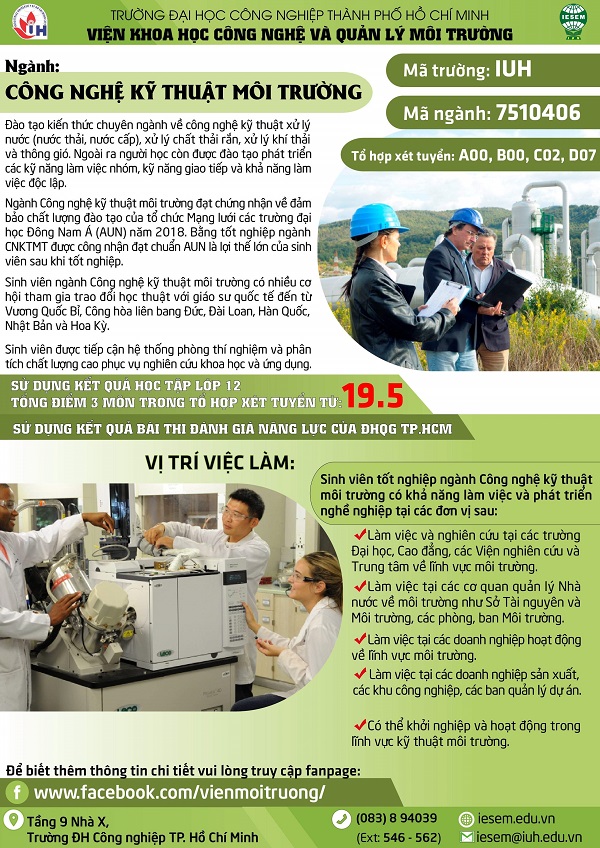 Tuyển sinh Ngành Kỹ thuật Môi trường năm 2020